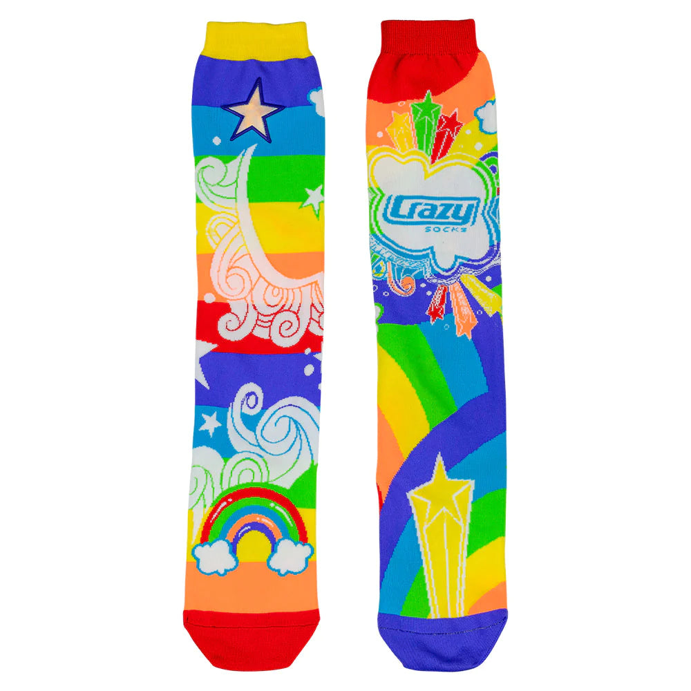 Knee high rainbow socks! What more could you want? Crafted with exceptional quality materials, the Rainbow Dream Crazy Socks are meticulously designed with reflective stars and UV details but built to last, ensuring you can enjoy them for a long time.
