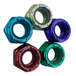 Crafted from high-strength anodized aluminum, these axle nuts not only secure your wheels tightly but also add a splash of personality to your skates.