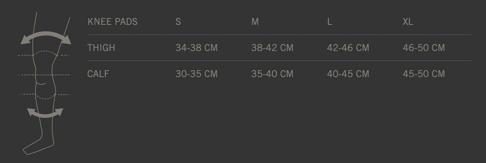 Available in S/M and L/XL. Sizes align with the TSG Force V knee pads (see image), but can be used under any other knee pads for additional support and protection.