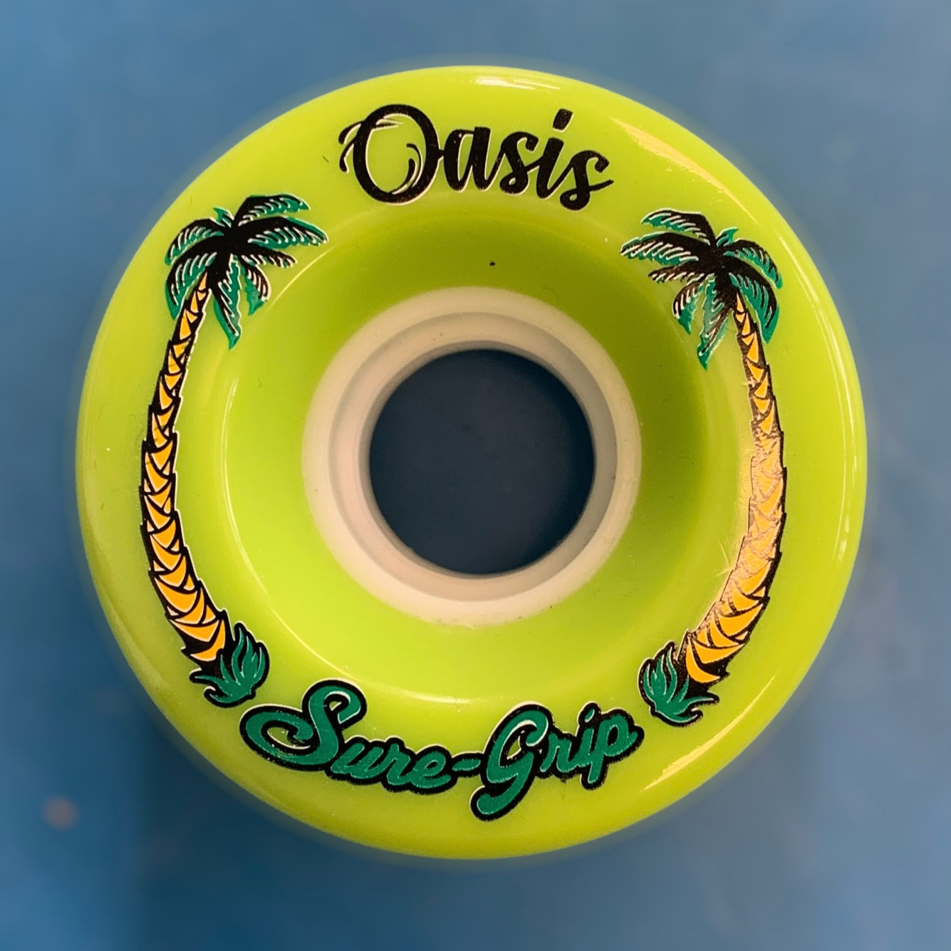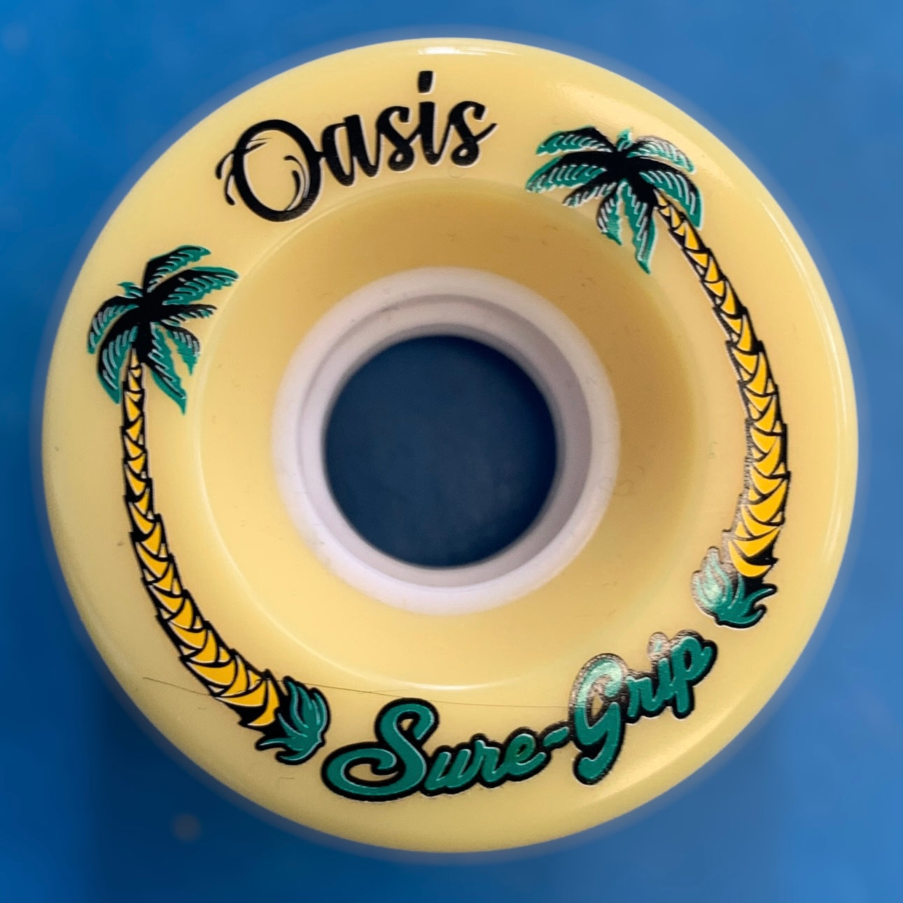 A premium outdoor wheel at a very reasonable price. The Sure-Grip Oasis wheel is made from premium polyurethane with a high rebound to provide excellent roll over a variety of surfaces. The 82a hardness makes it forgiving enough for general outside use while not being overly squishy for indoors.