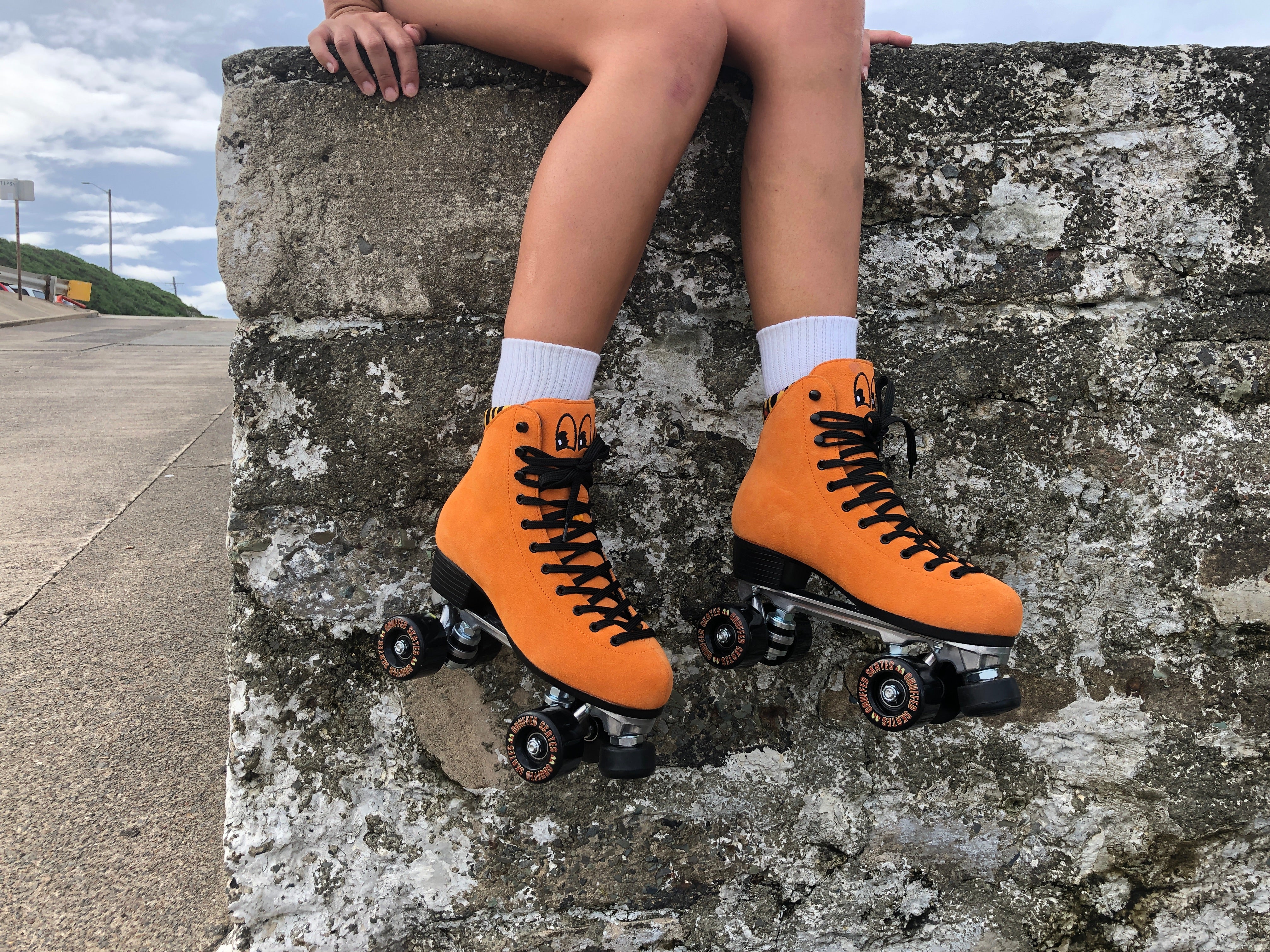 Chuffed wanderer roller skate crew collection in wild thing orange.