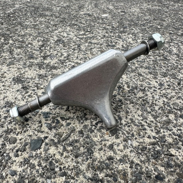 A park specific truck designed by skaters and made in Australia! Small batch manufactured, true park truck with a 2.5inch hangar. These trucks are made locally in small batches and are hand finished, so they may look a little rougher than other options on the market. This is the desired finish to reduce unnecessary energy and water usage, and makes every truck a unique work of art.