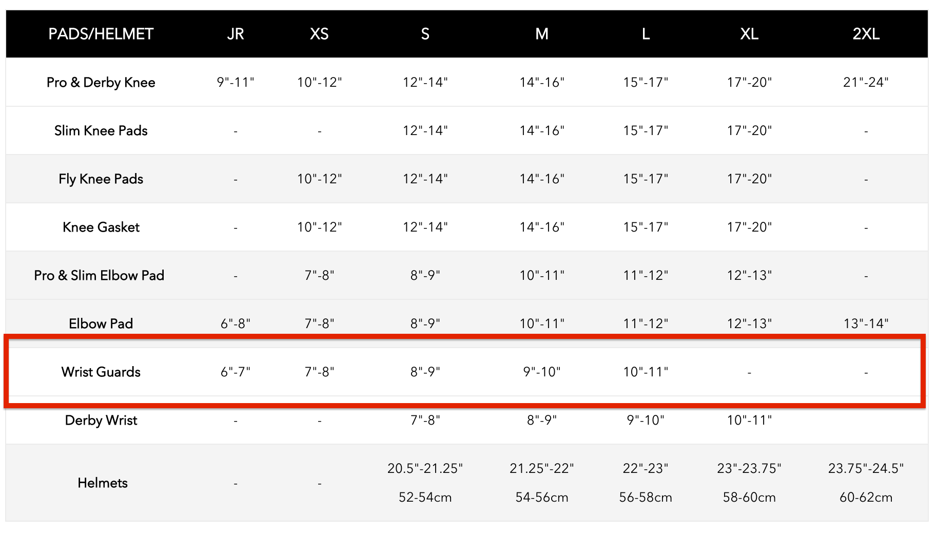 To ensure a perfect wrist guard fit, measure hand circumference at the knuckles and match to the sizes listed below:
