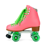 With the Beach Bunny line, classic Moxi fashion has never been more affordable! The Beach Bunny features a traditional high top boot with thoughtful touches including drum-dyed vinyl uppers for more authentic color saturation and additional ankle padding that provides comfort and security whether you’re cruising down the boulevard or ripping up your favorite skate park. Bright laces that shine in the sun add to the fashion-forward design of the Beach Bunny, and the moisture-wicking Dri-Lex™ liner is printed with a custom pattern that was designed from scratch by Moxi team members for a skate that is 100% Moxi, inside and out. Complete with glittery high rebound urethane outdoor wheels and a pair of matching toe caps, the Beach Bunny is ready to accompany you on your next adventure!