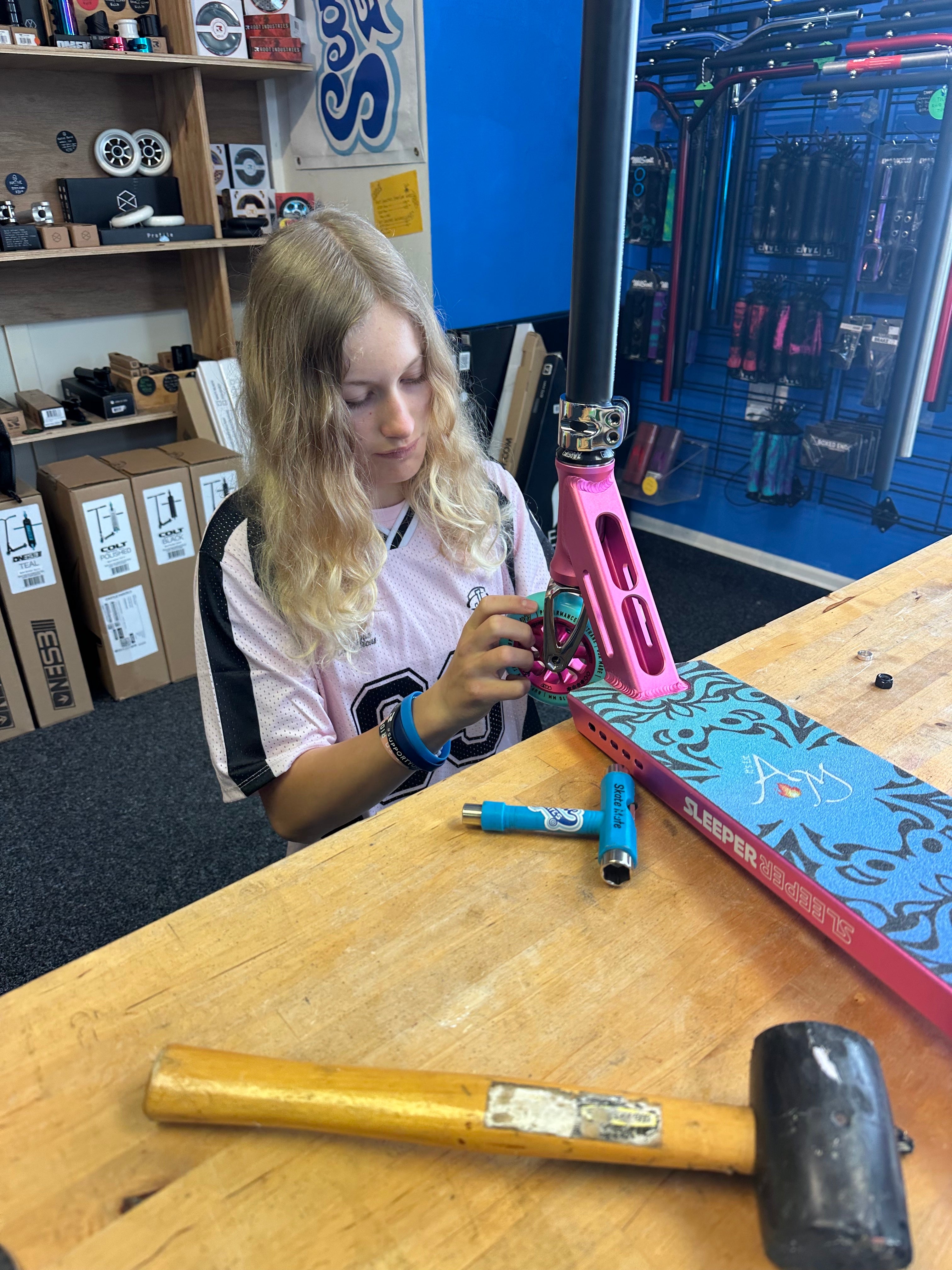 Alana hand picked some fantastic components and built a sick scooter for us to raffle off! Be in it to win it - $5 per ticket! All proceeds will go to offset Alana's travel costs. Alana will pull the winning ticket in store the week before she travels to the comp (stay tuned for day and time!) - let's give her a grand send-off!
