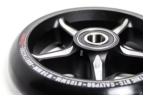 These Calypso Wheels from Ethic DTC are 30mm wide with a 125mm diameter which is the biggest on the market. The larger wheel and bearings will destroy all terrains, roll faster and last longer. You'll need 12mm axles to ride these big boys.