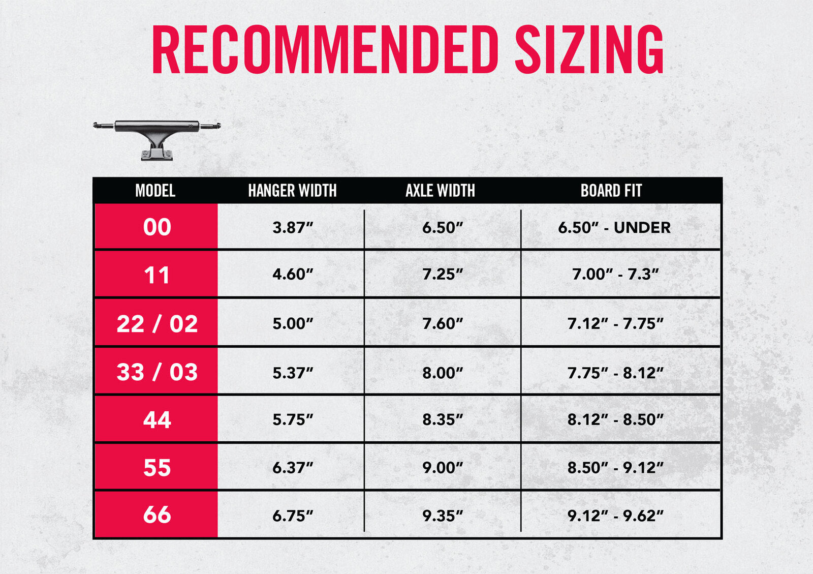 Ace tried and true Classic. 7071 Aluminum and 3056 steel axles provide performance that is tried and true. Tapered hanger ends and oversized axles allow for better bearing performance. This is where we began and our evolution will continue with the Classic model line that delivers unmatched turn and grind performance at a price point all can enjoy.