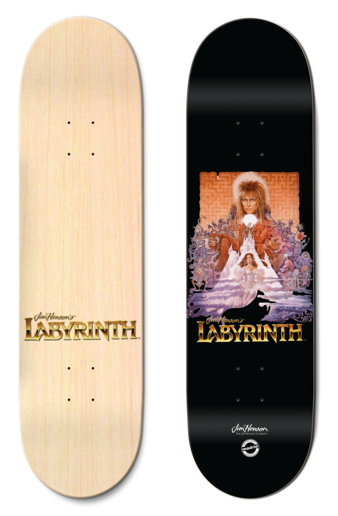 Madrid Skateboards continues to celebrate our love affair with the '80s through a new collaboration featuring images from the epic sci-fi fantasy film Labyrinth staring the legendary David Bowie. These boards are handcrafted in our Huntington Beach factory and officially licensed by The Jim Henson Company. Grab one today to skate or hang on the wall to show your love for this classic film!
