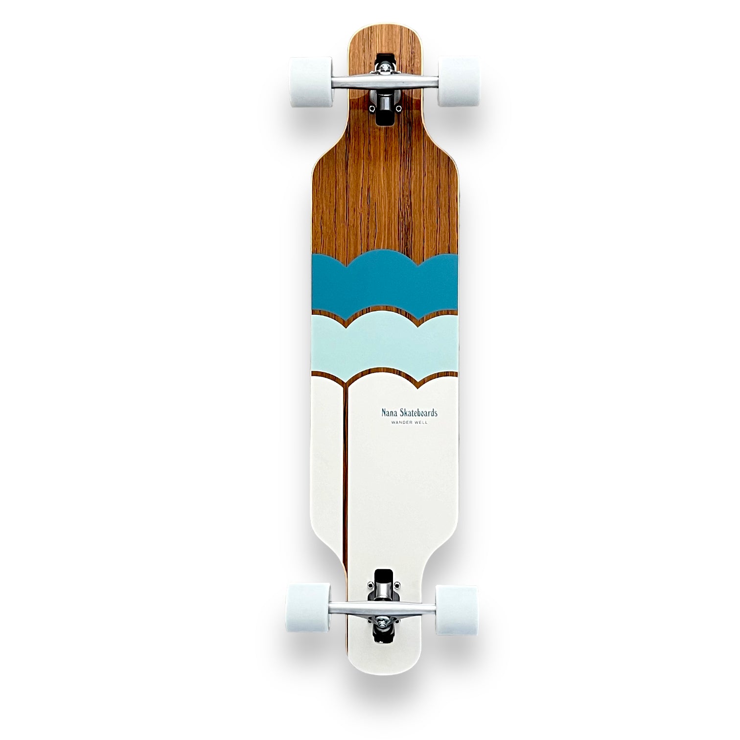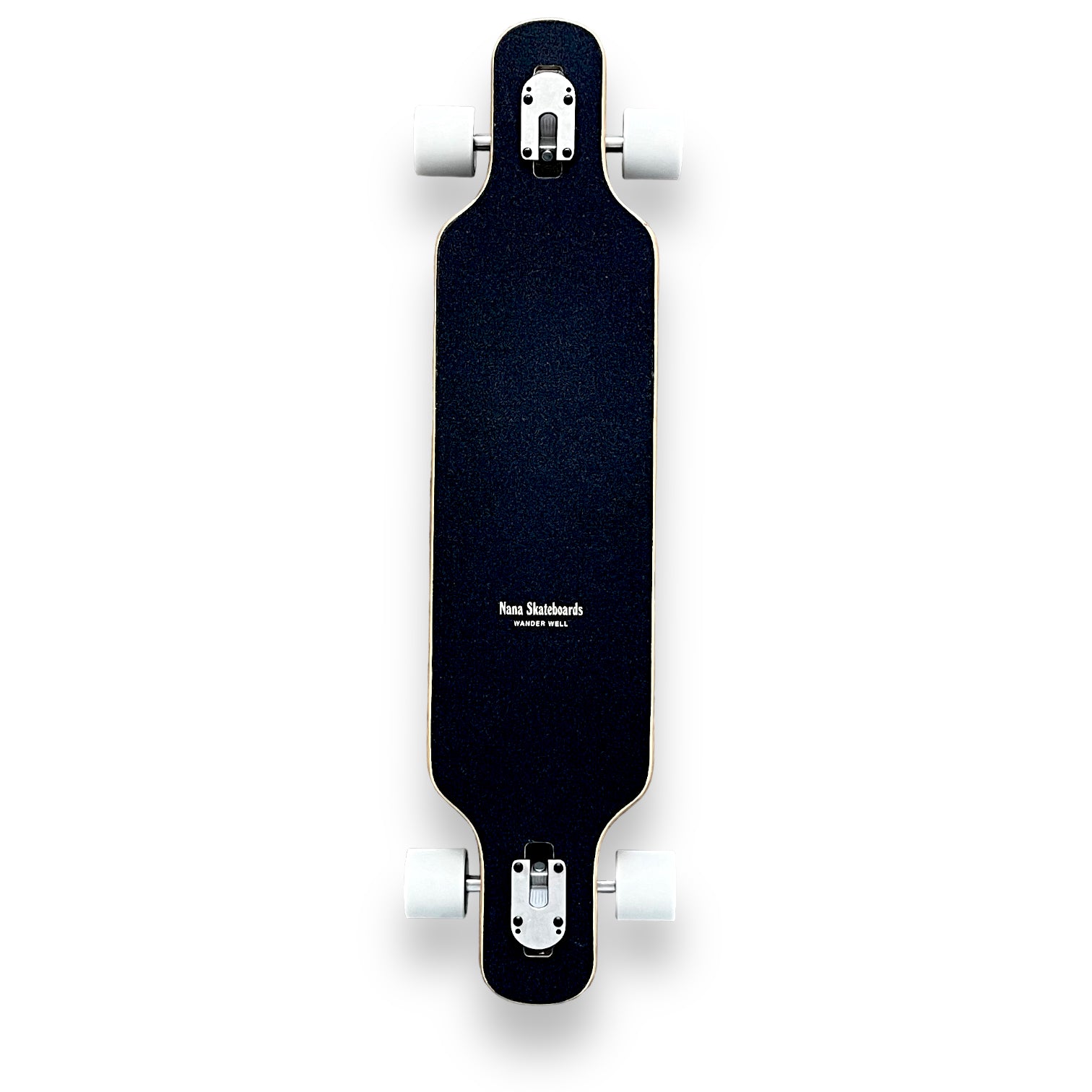 The Push Ranger Complete from NANA skateboards offers the perfect platform for getting out for a push and getting a few kilometres under you’re belt. Built with drop-through mounting and a slightly rockered platform and subtle flex, the Push Ranger makes pushing easy, offering its riders a lower centre of gravity and a nice bit of cushion for those longer journeys. Complete with Reverse King Pin 180mm Ogre Trucks, 72mm Offsiders and NANA x DSCO bearings built-ins.
