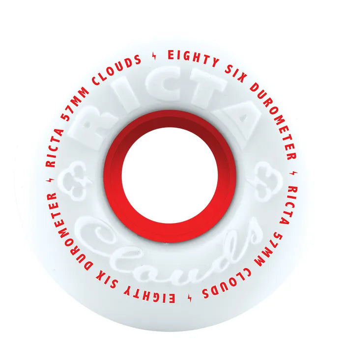 Ricta Skateboard Wheels Clouds White with Red 57/86a Pack of 4